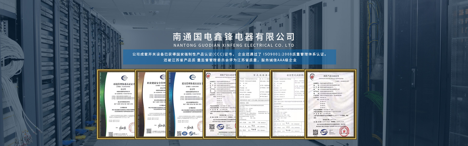 南通國(guó)電鑫鋒電器有限公司座落在有中國(guó)江蘇省南通市,南通是全國(guó)首批十四個(gè)沿海對(duì)外開(kāi)放城市之一,是我國(guó) 民族紡織工業(yè)的搖籃和長(zhǎng)江沿線(xiàn)的港口城市,又是中國(guó)的體育之鄉(xiāng), 教育之鄉(xiāng)崛起中的南通是江海大地上一顆璀燦的明珠。 公司成立于2005年,是專(zhuān)業(yè)生產(chǎn)各類(lèi)高低壓成套開(kāi)關(guān)設(shè)備的專(zhuān)業(yè)廠家,公司成套開(kāi)關(guān)設(shè)備已獲得國(guó)家強(qiáng)制性產(chǎn)品認(rèn)證(CCC)證書(shū), 企業(yè)還通過(guò)了 ISO9001:2008質(zhì)量管理體系認(rèn)證。